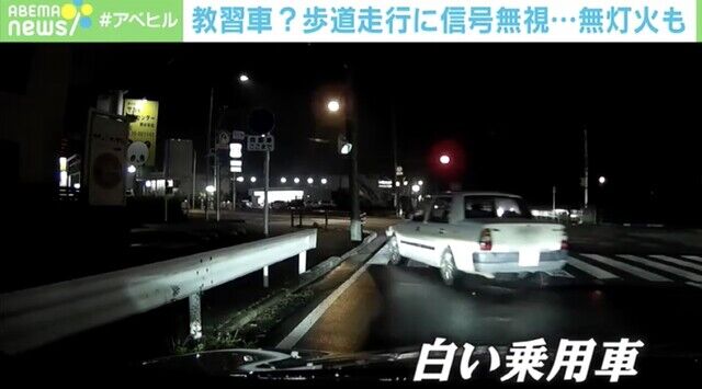 映像を撮影した運転手は「信号無視で行ってもしも事故があって、歩行者がいたり、または自分の車に何らかの被害があったりしたら、ちょっと怖いなとは思いましたね」と話した。驚くことに、乗用車には「仮免許 練習中」のプレートが付いていたという。