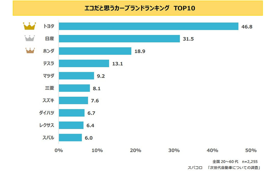 □「次世代自動車についての調査」の結果を発表しました。エコだと思うカーブランドランキング! | 株式会社スパコロ