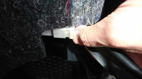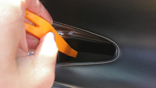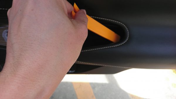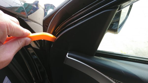 内張り道具を使って隙間に入れ込んではがしていきます。(テコを利用していくと簡単に取れます。)