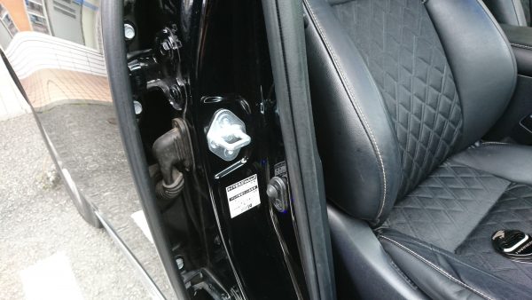 このパーツは、ドアストライカーカバーといってドアのロック金具みたいなのを張り付けるだけ。