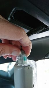 バニティランプは運転席の真上にあります。太陽の光を避けるやつです。