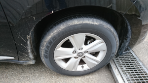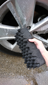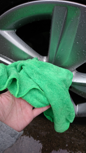 ⑤ホイール全部終わったら水で流します。その後タオルでふきます。