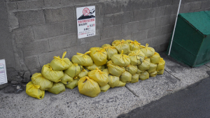 桜島の灰、片づけあります。黄色い袋に入れて、燃えるゴミと一緒に出す。だったかな。忘れました笑